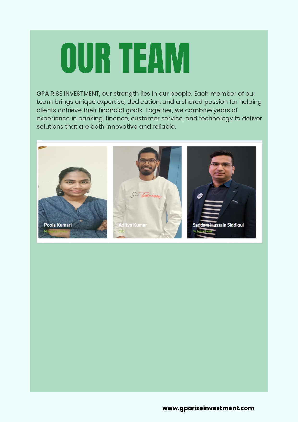 Under her leadership, GPA Rise Investment Consultancy continues to grow as a reliable and customer-centric firm that prioritizes trust, clarity, and long-term success for every client.